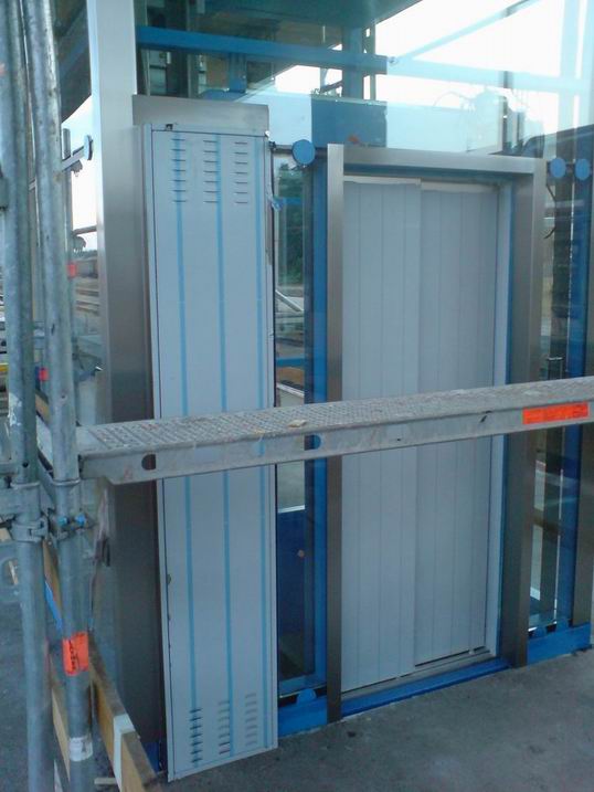 nerezové obložení skleněné výtahové šachty - Veselí nad Moravou.